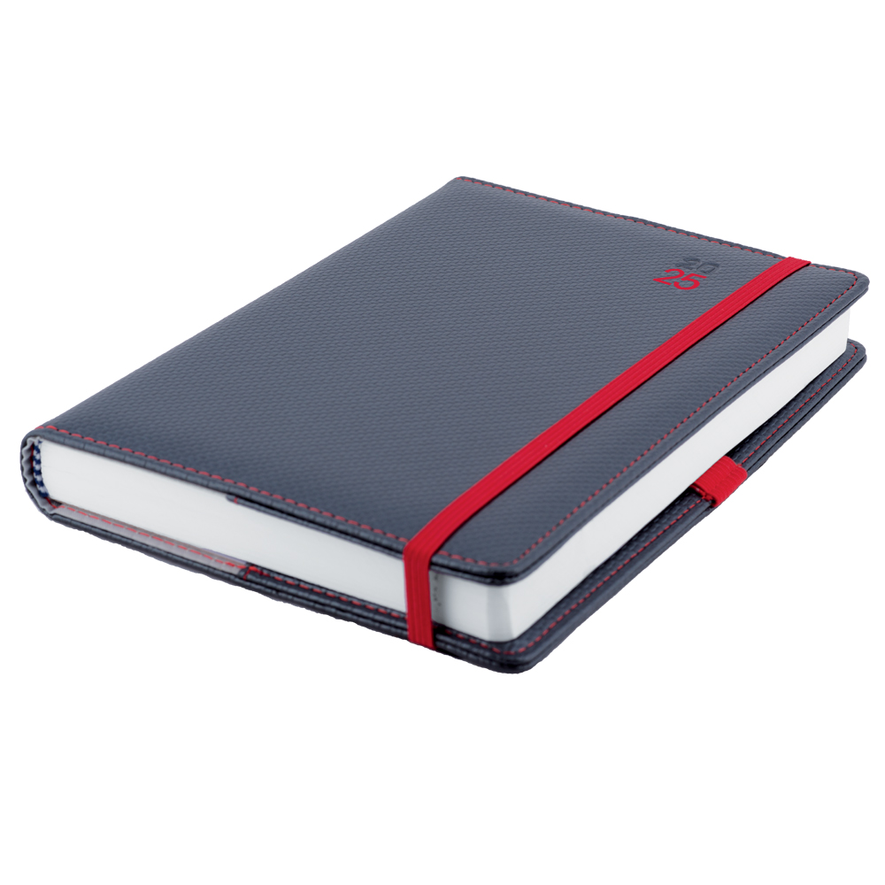 Diár ELASTIC denný A5 2025 polský - grafit/červená gumička