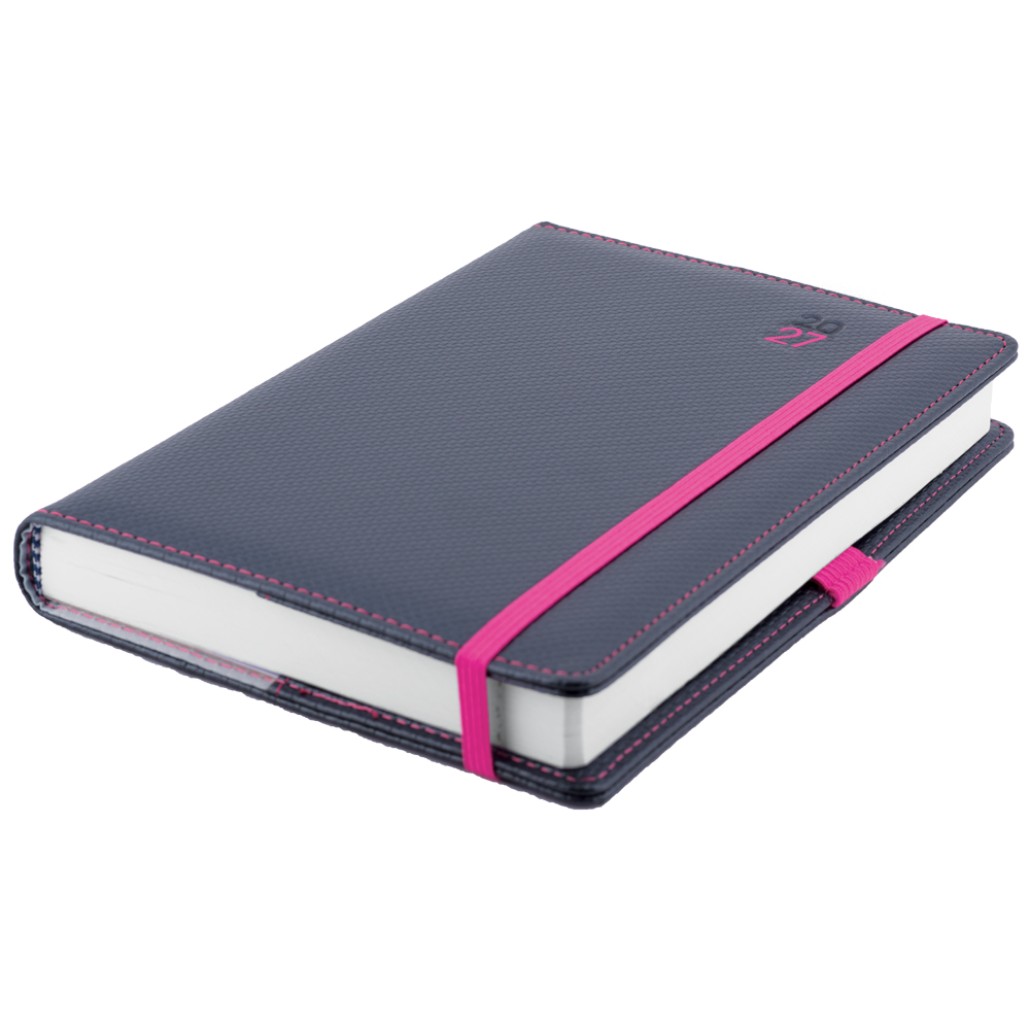 Diár ELASTIC denný A5 2027 český - grafit/magenta gumička