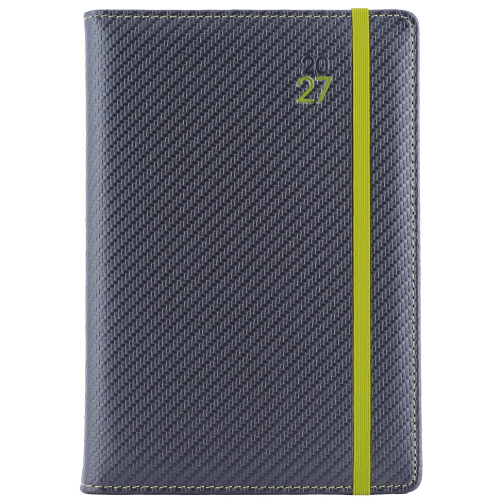 Diár ELASTIC denný A5 2027 český - grafit/zelená gumička