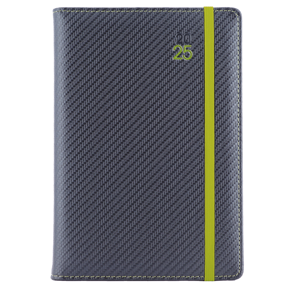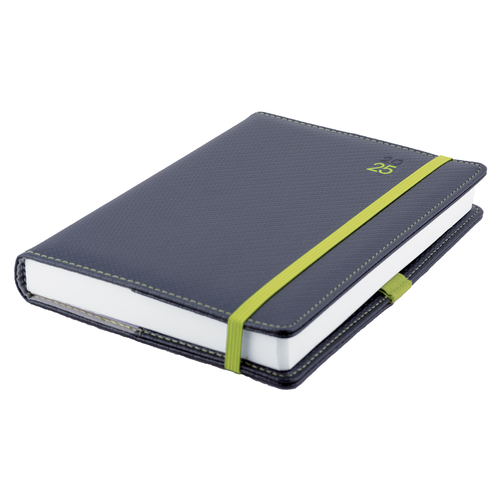 Diár ELASTIC denný B6 2025 - grafit/zelena gumička