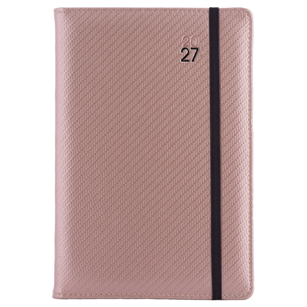 Diár ELASTIC týždenný A5 2027 polský - púdrová/čierna gumička