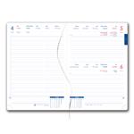 Diár obsahuje: okrúhle odtrhávacie rožky, bielu záložku a pero