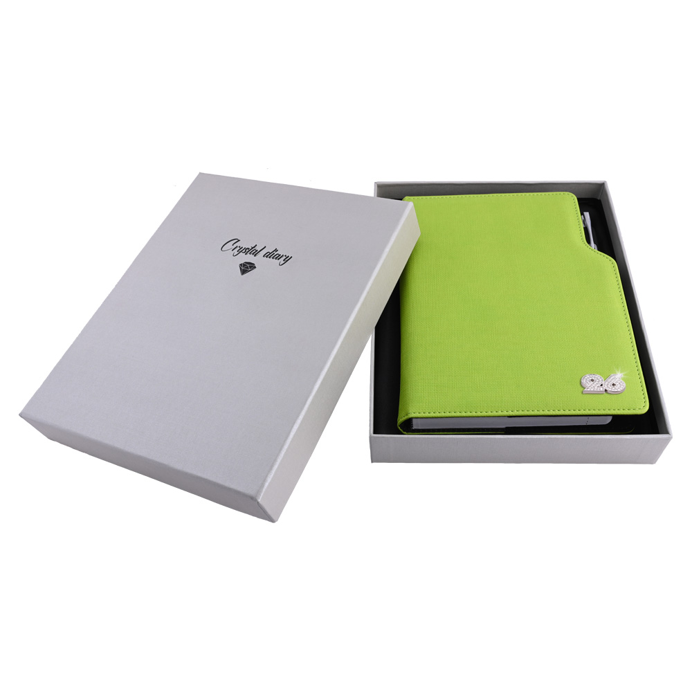 Diár je balený v darčekovej krabičke vystlanej saténom.