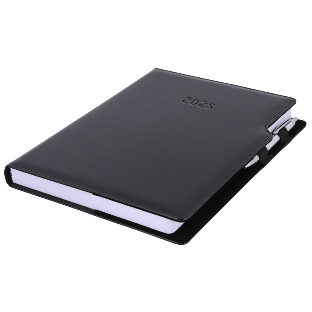 Diár GEP s perom denný A4 2025 polský - čierna, čierné vnútro