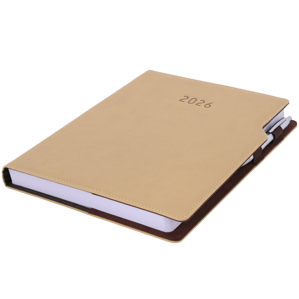 Diár GEP s perom denný A4 2026 - béžová/hnedé vnútro