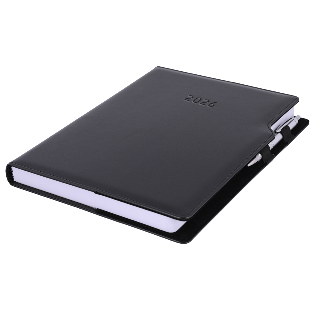Diár GEP s perom denný A4 2026 polský - čierna, čierné vnútro