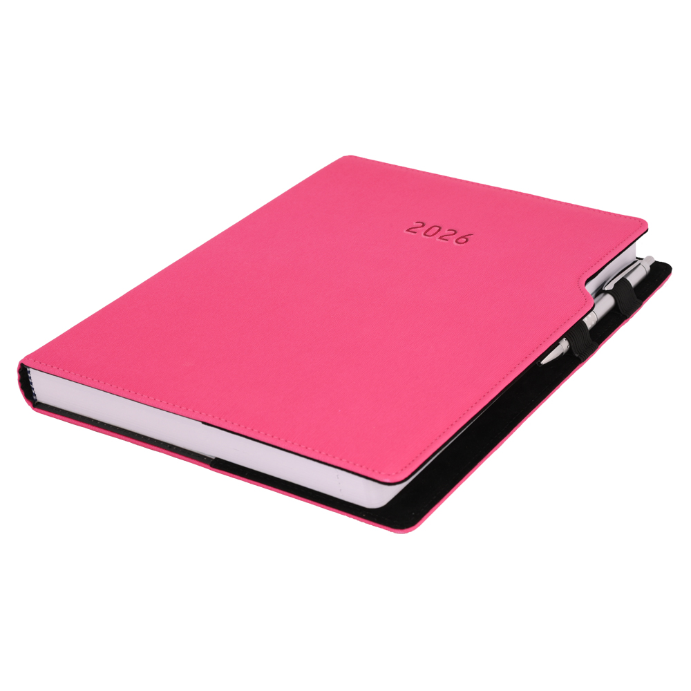 Diár obsahuje: krúhle odtrhávacie rožky, bielu záložku a pero
