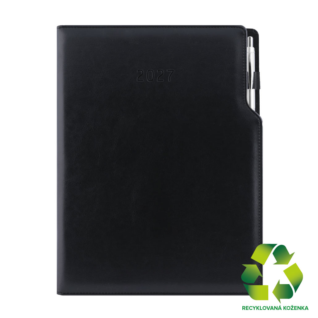 Diár GEP s perom denný A4 2027 - čierna/čierne vnútro - recyklovaná koženka