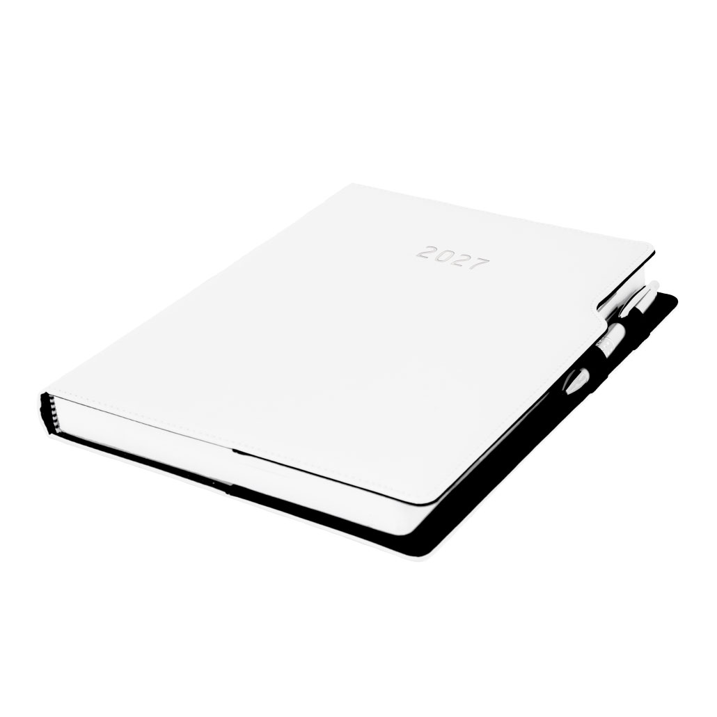 Diár GEP s perom denný A4 2027 polský - biela, biele obšitie