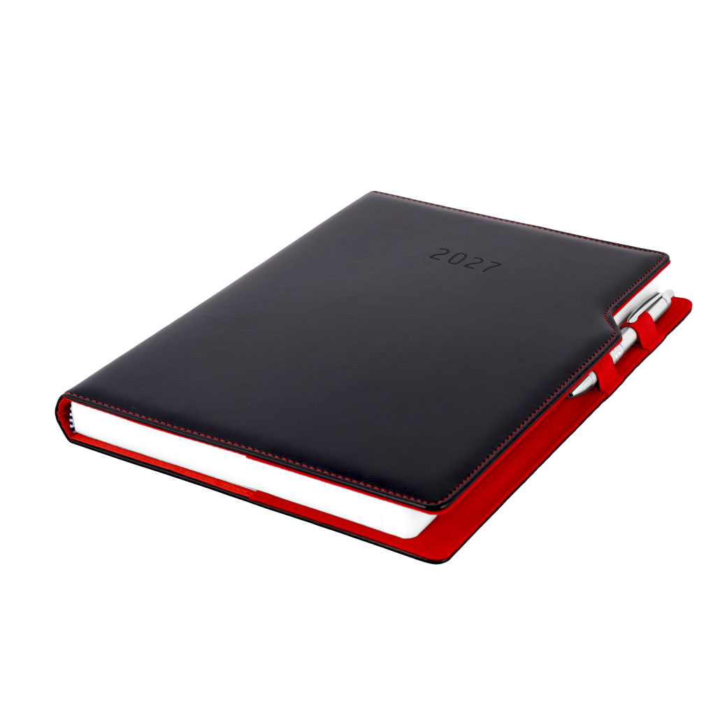 Diár GEP s perom denný A4 2027 polský - čierna, červené vnútro