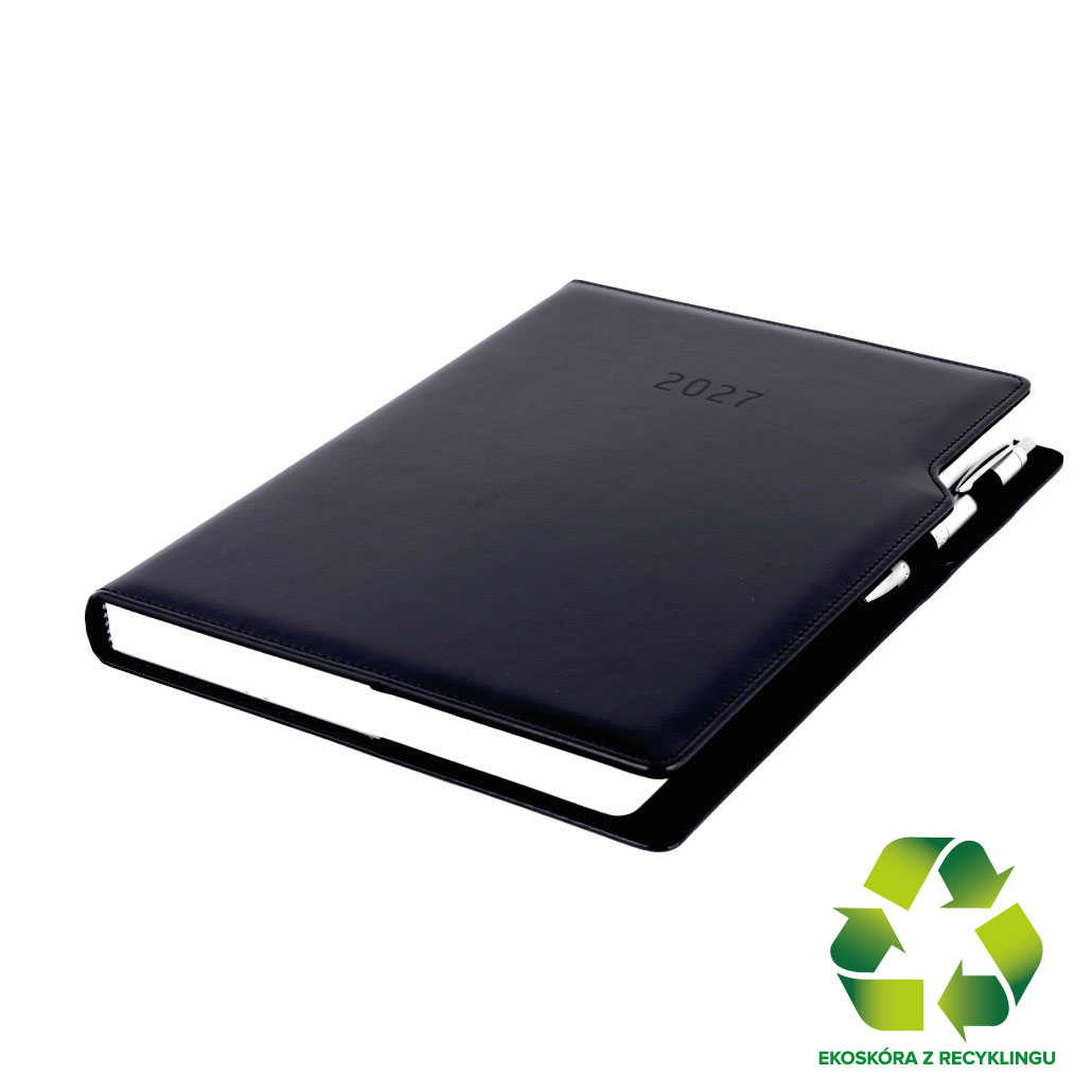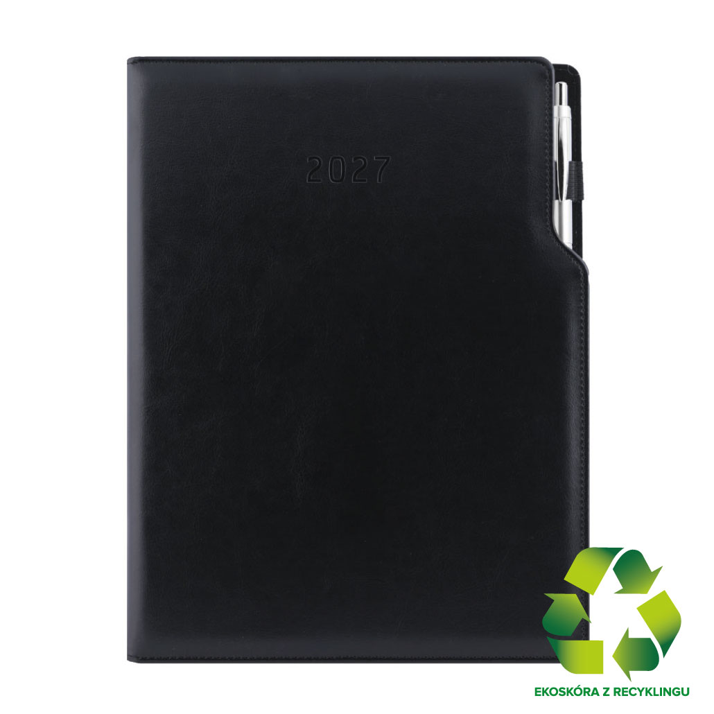 Diár GEP s perom denný A4 2027 polský - čierna/čierné vnútro - recyklovaná koženka