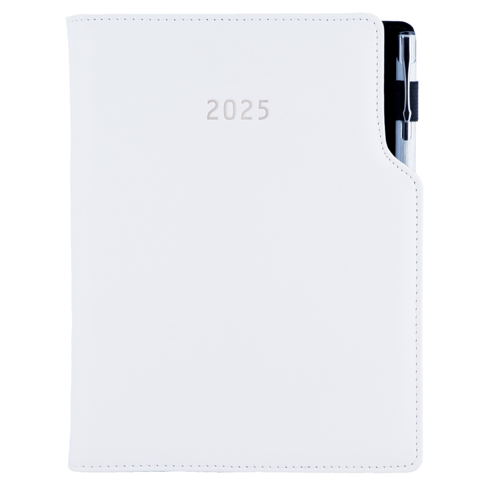 Diár GEP s perom denný A5 2025 český - biela/ biele obšitie