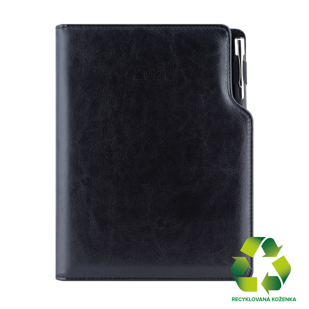 Diár GEP s perom denný A5 2027 český - čierna/čierne vnútro - recyklovaná koženka