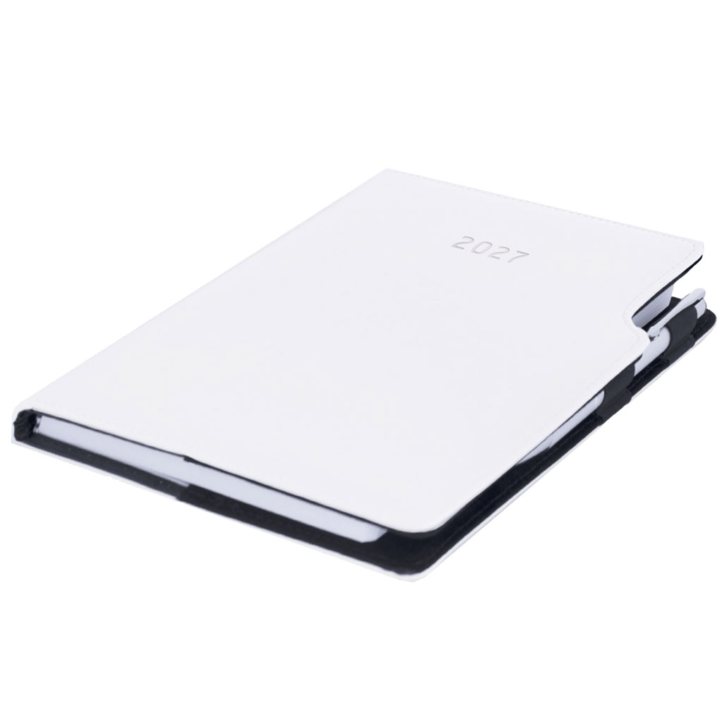 Diár GEP s perom denný A5 2027 polský - biela, čierne obšitie