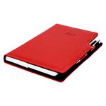 Diár obsahuje: okrúhle odtrhávcie rožky, bielu záložku a pero