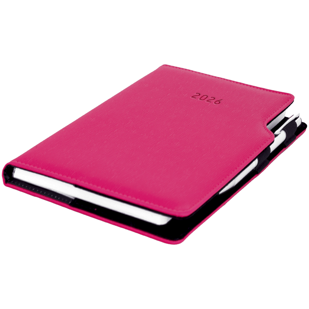 Diár obsahuje: krúhle odtrhávacie rožky, bielu záložku a pero