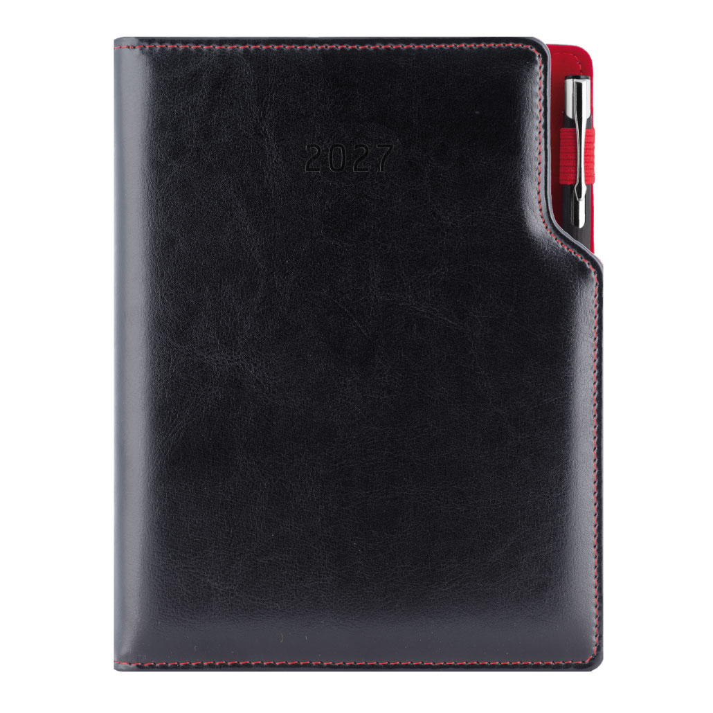 Diár GEP s perom denný B6 2027 - čierna/červené vnútro