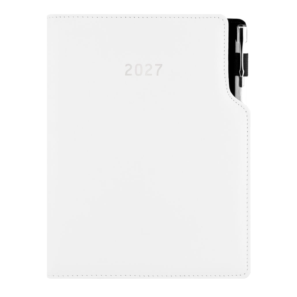 Diár GEP s perom denný B6 2027 polský - biela, biele obšitie