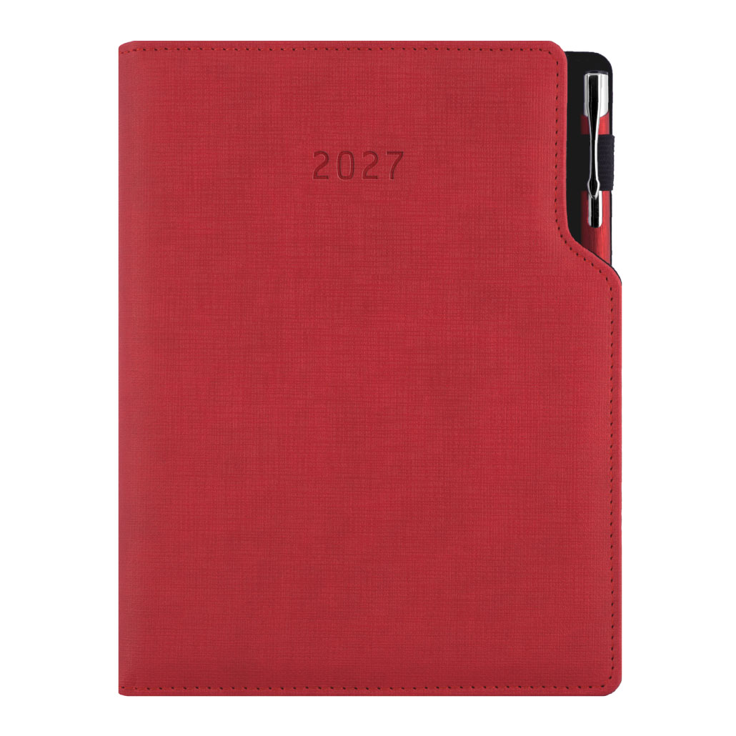 Diár GEP s perom denný B6 2027 polský - červená pastelová