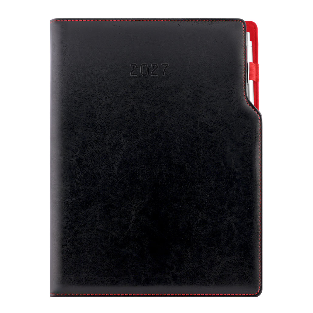 Diár GEP s perom týždenný A4 2027 - čierna/červené vnútro