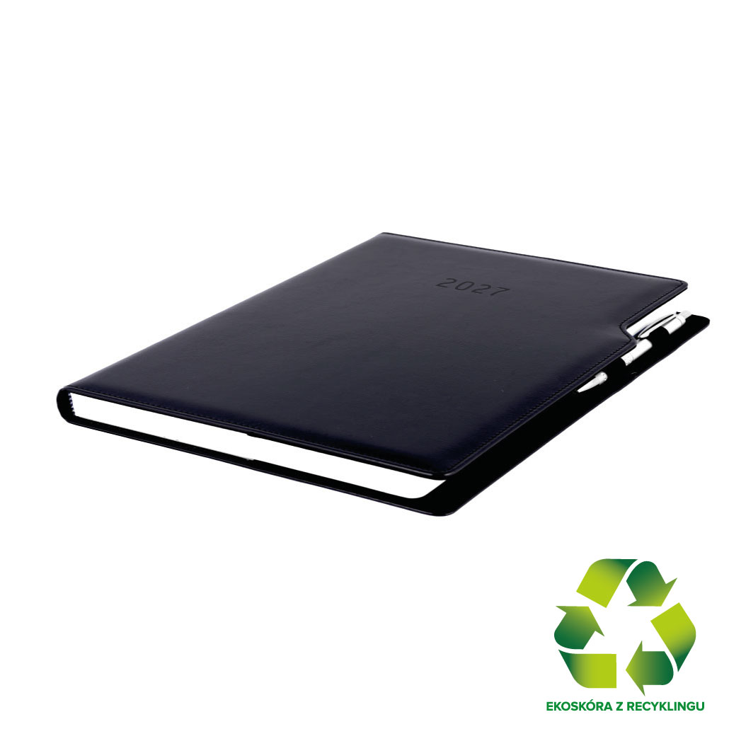 Diár GEP s perom týždenný A4 2027 polský - čierna/čierné vnútro - recyklovaná koženka