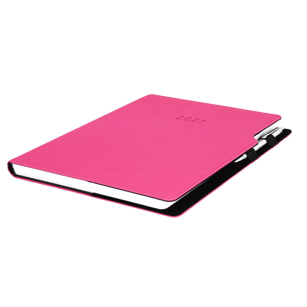 Diár obsahuje: okrúhle odtrhávcie rožky, bielu záložku a pero