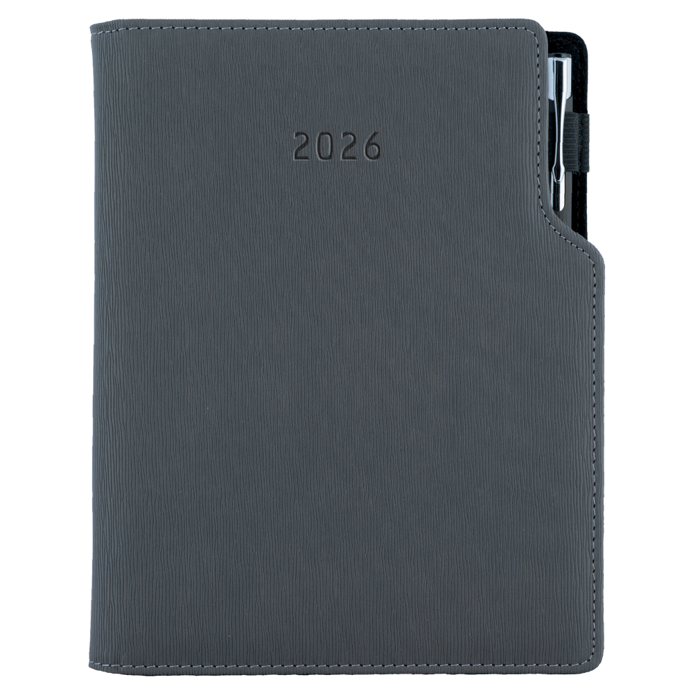Diár obsahuje: okrúhle odtrhávacie rožky, bielu záložku a pero