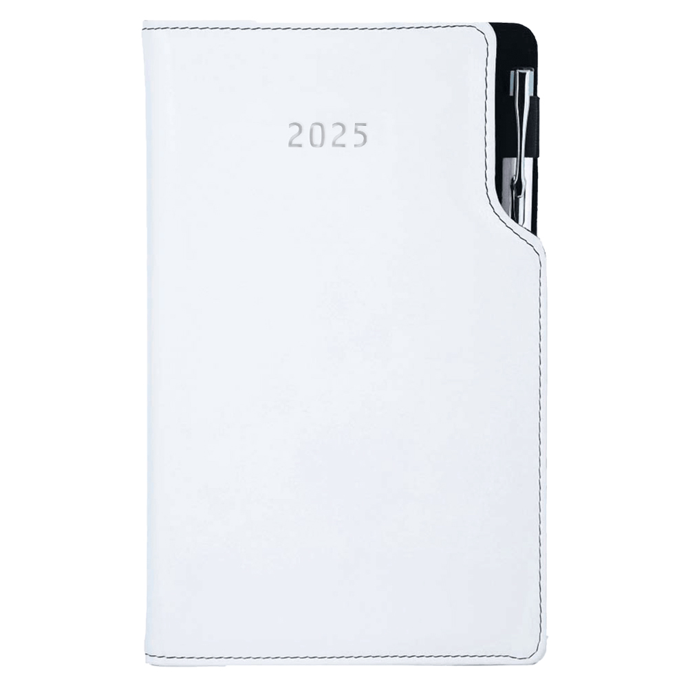 Diár GEP s perom týždenný vreckový 2025 český - biela/ čierne obšitie