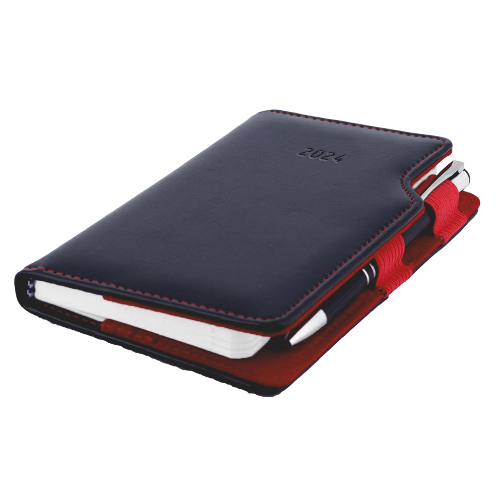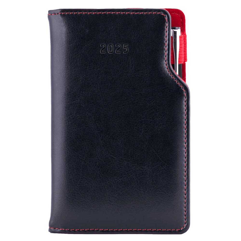 Diár GEP s perom týždenný vreckový 2025 český - čierna/červené vnútro