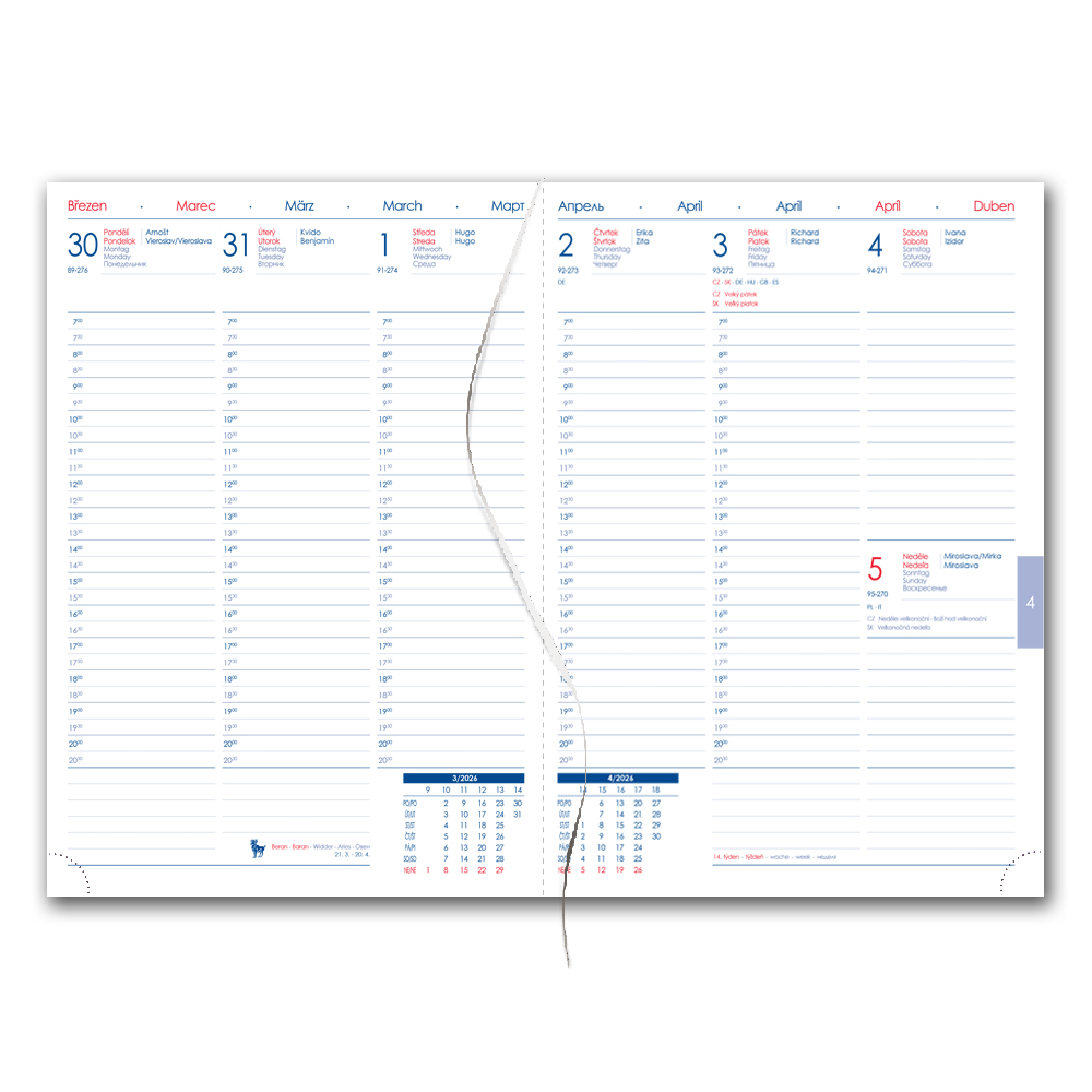 Diár obsahuje: okrúhle odtrhávacie rožky a bielou záložku