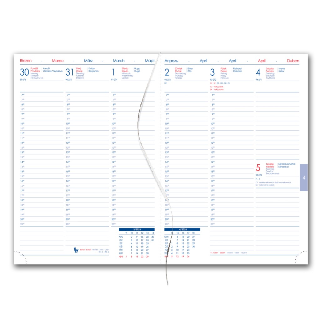 Diár obsahuje: okrúhle odtrhávacie rožky a bielou záložku