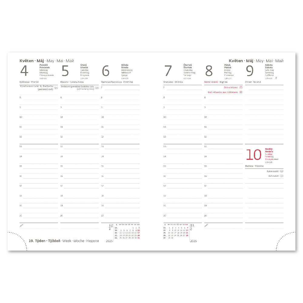 medzinárodné sviatky, ročný výhľad, týždenný layout, adresár,