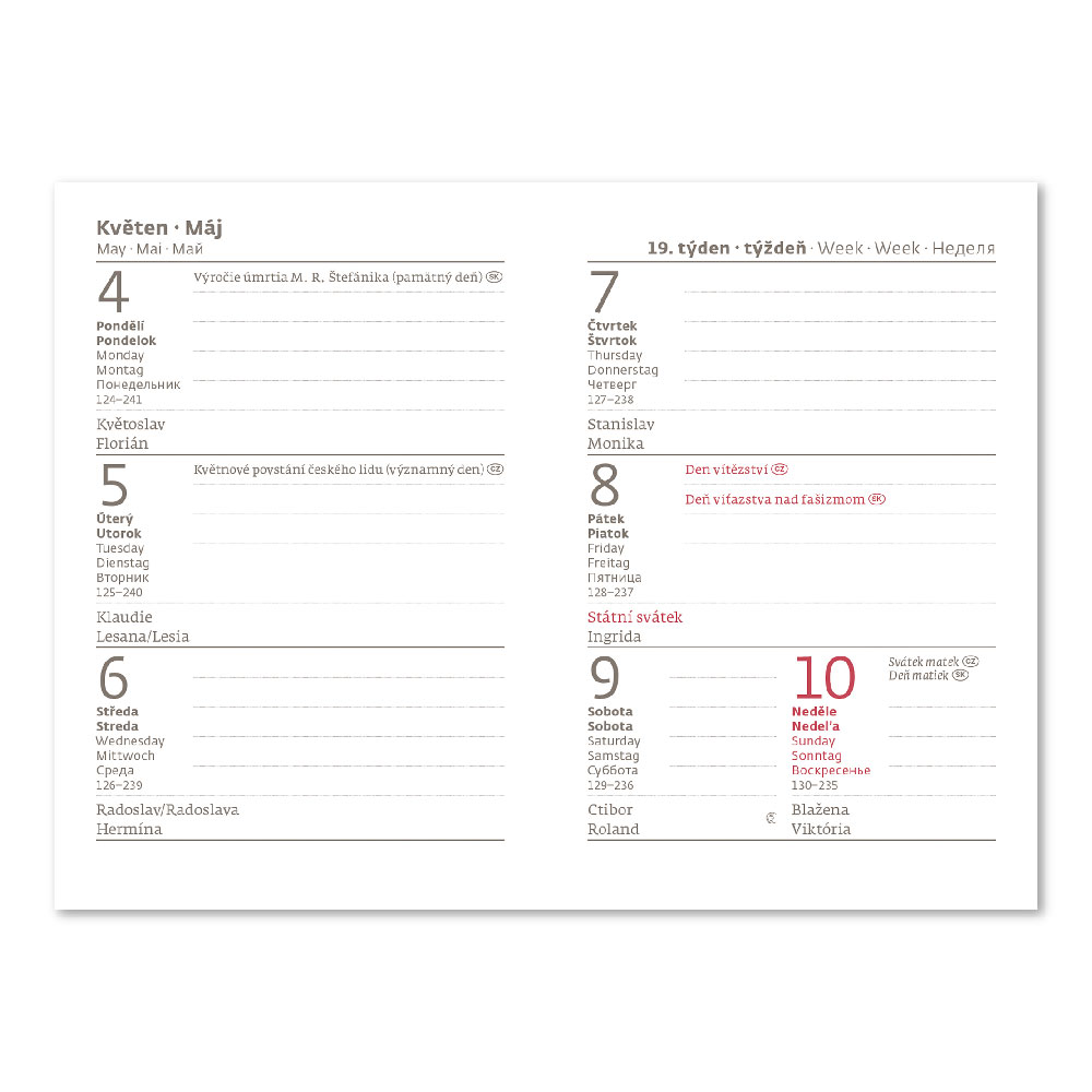 plánovací kalendár, štátne sviatky ČR/SR,