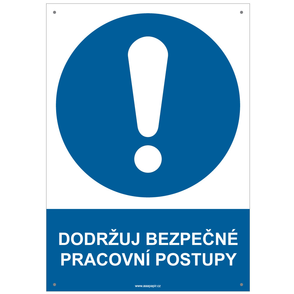 DODRŽUJ BEZPEČNÉ PRACOVNÍ POSTUPY - bezpečnostní tabulka s dírkami, plast A4, 2 mm