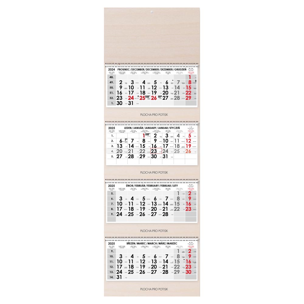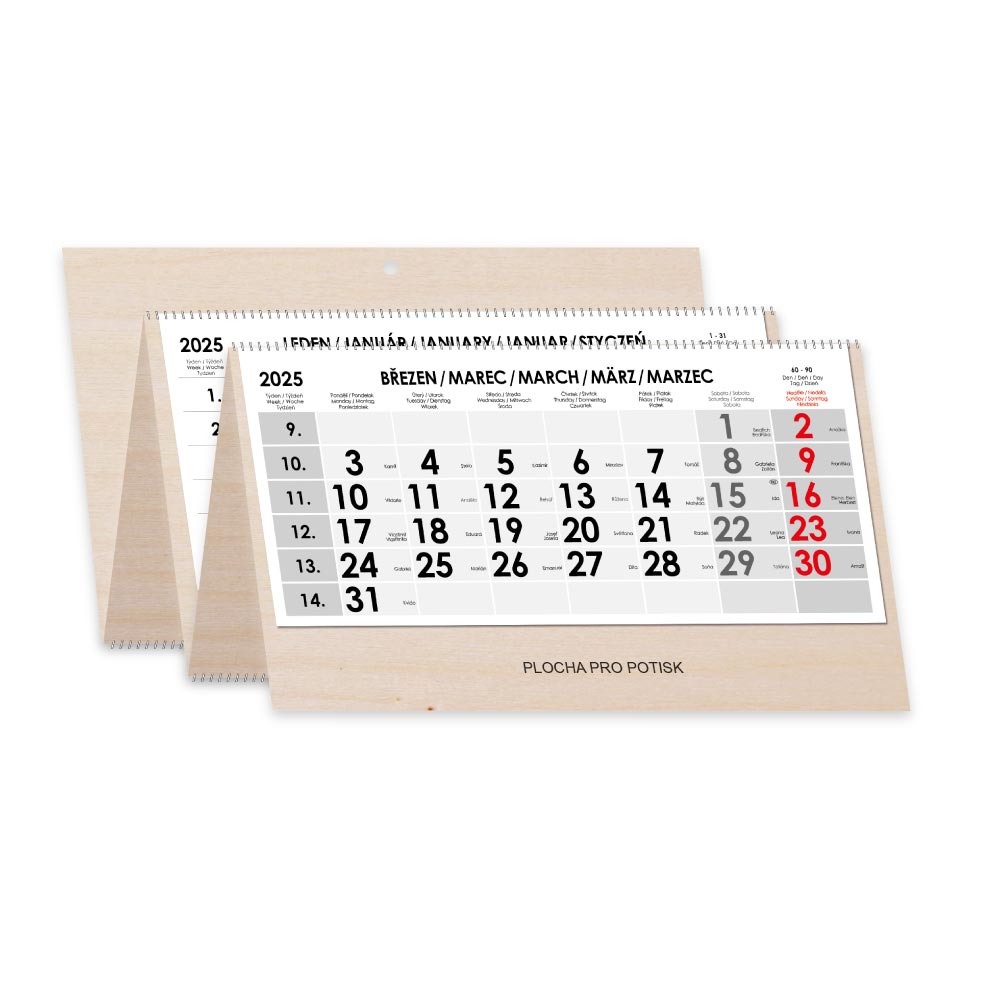 Drevený štvormesačný kalendár Kvatro Wood skládaný český so špirálou 2025 - sivý