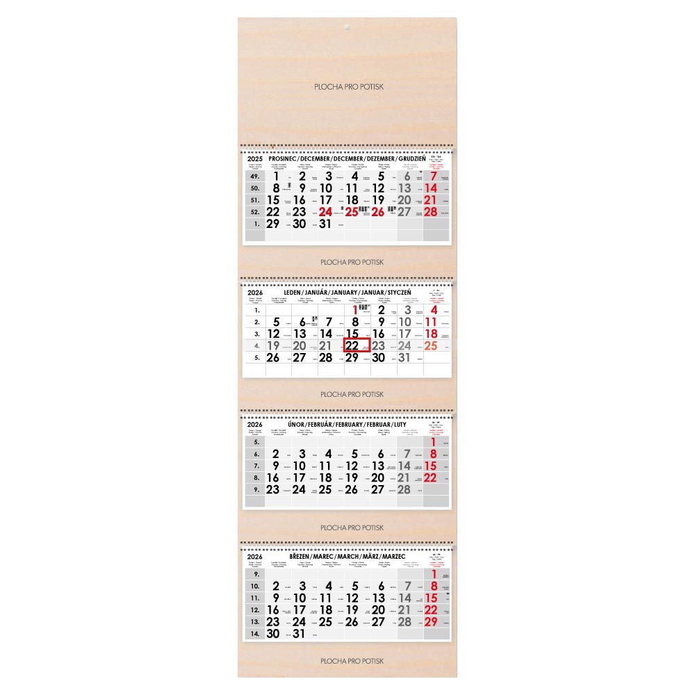 Formát kalendária: 295 x 135 mm