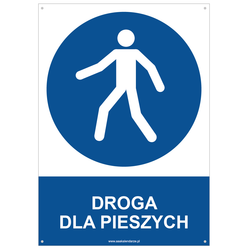 DROGA DLA PIESZYCH - znak BHP z dziurkami, płyta PVC A4, 2 mm