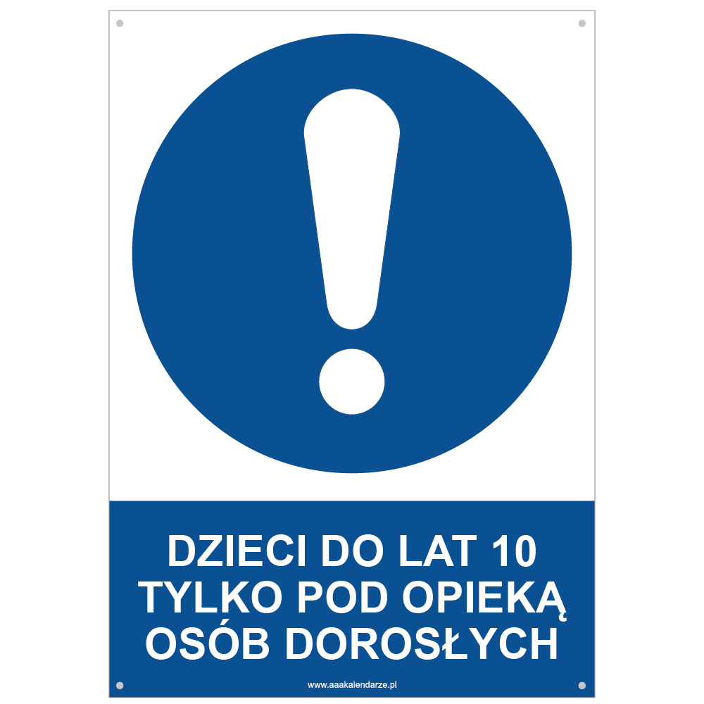 DZIECI DO LAT 10 TYLKO POD OPIEKĄ OSÓB DOROSŁYCH - znak BHP z dziurkami, płyta PVC A4, 2 mm