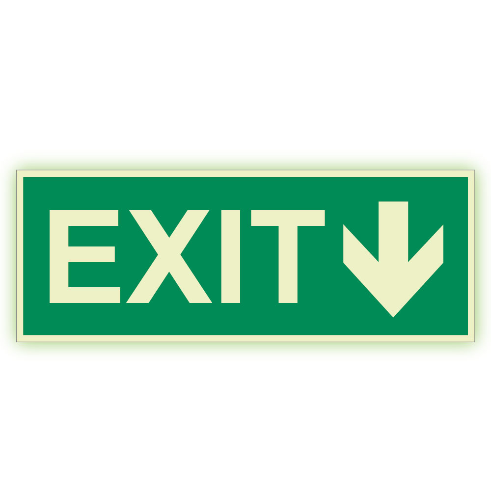 EXIT ze strzałką - fotoluminescencyjny znak, naklejka 200x75 mm