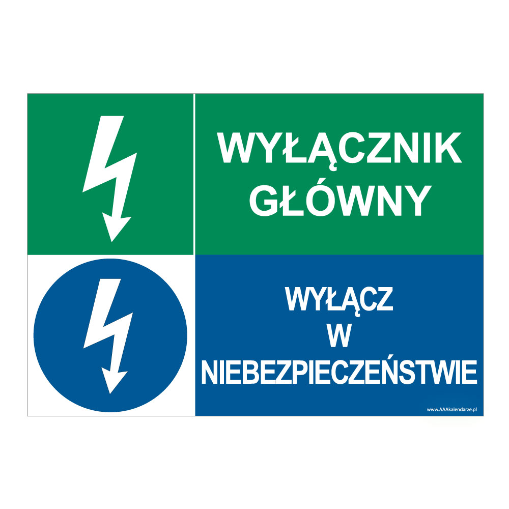 GŁÓNY WYŁĄĆZNIK DŹWIGU - WYŁĄCZ W NIEBEZPIECZEŃSTWIE, ZNAK ŁĄCZONY, naklejka 297x210 mm