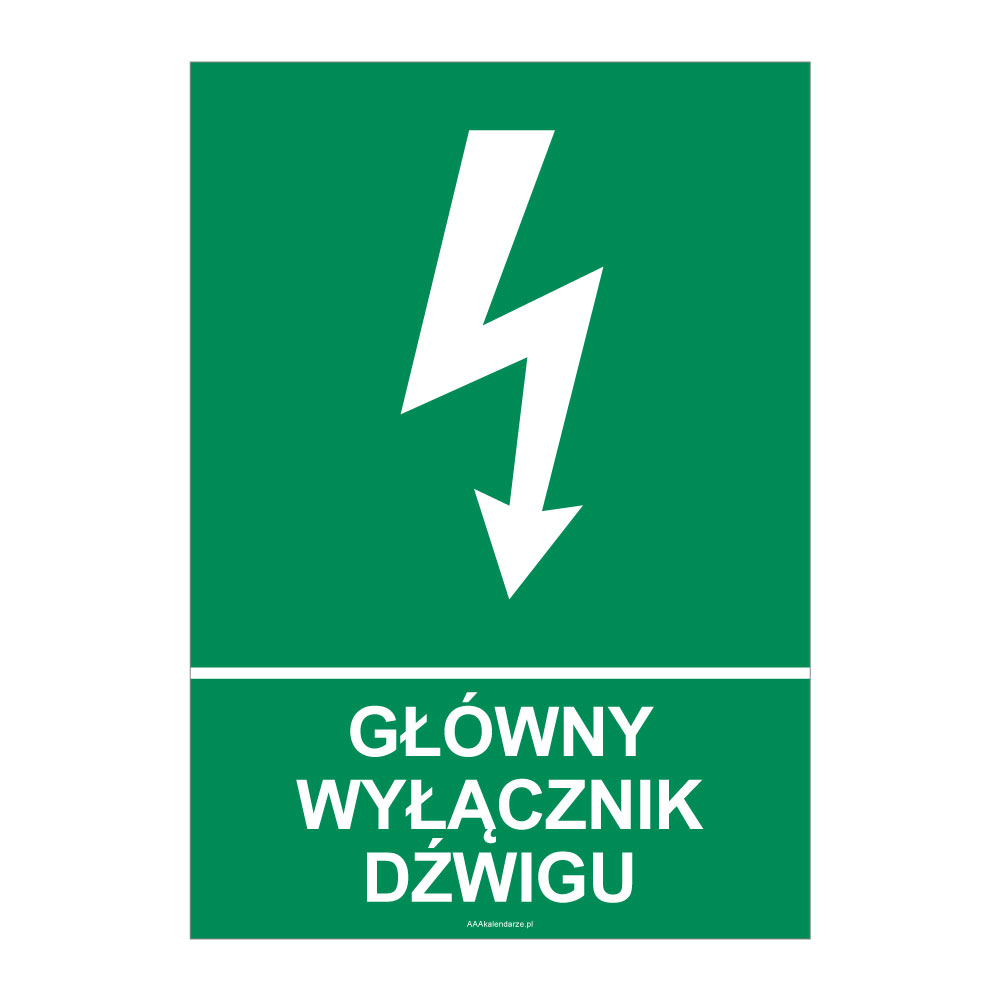 GŁÓWNY WYŁĄCZNIK DŹWIGU, naklejka 210x297 mm