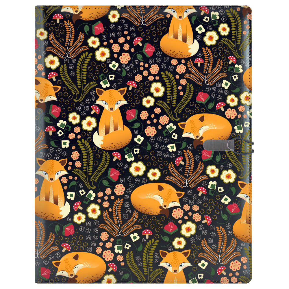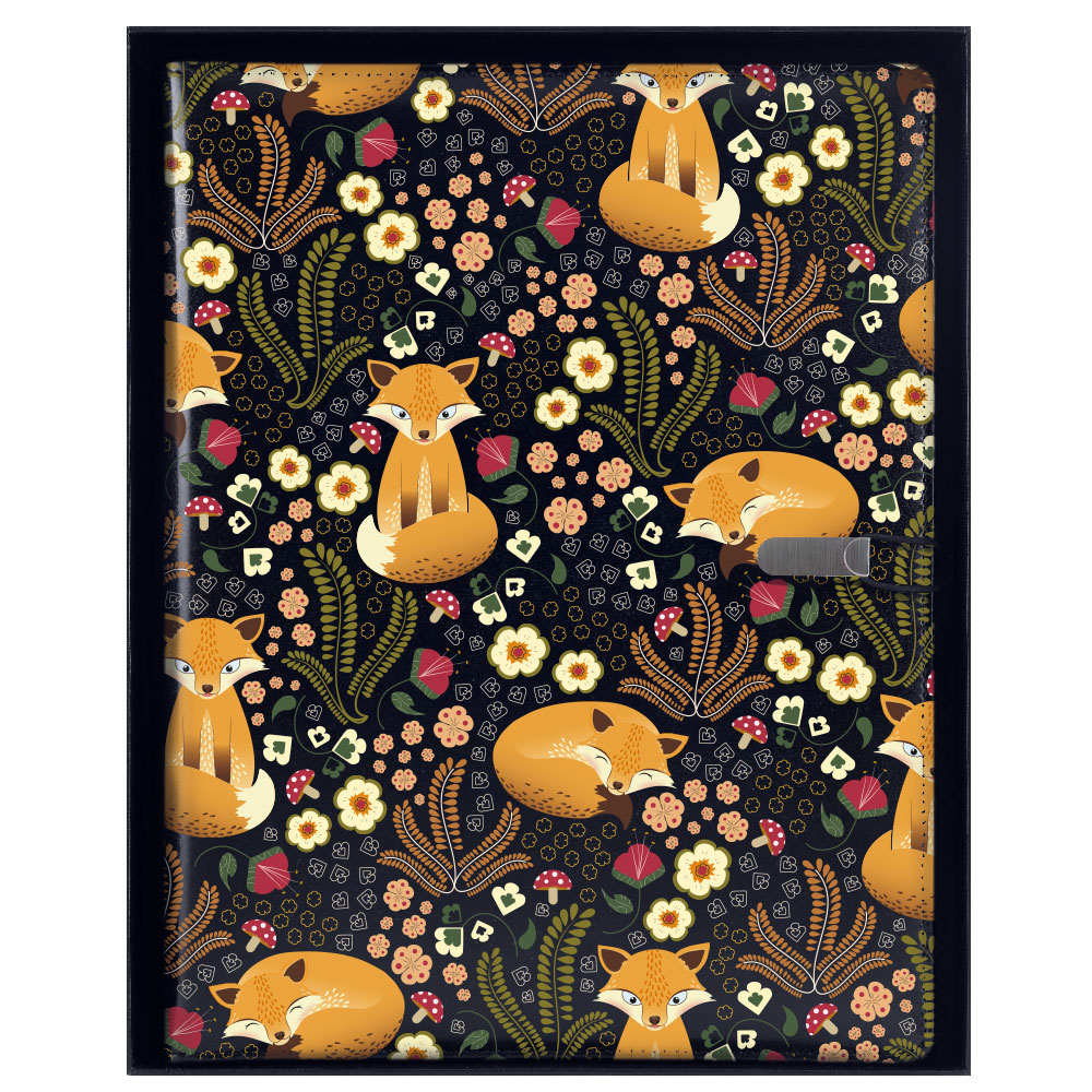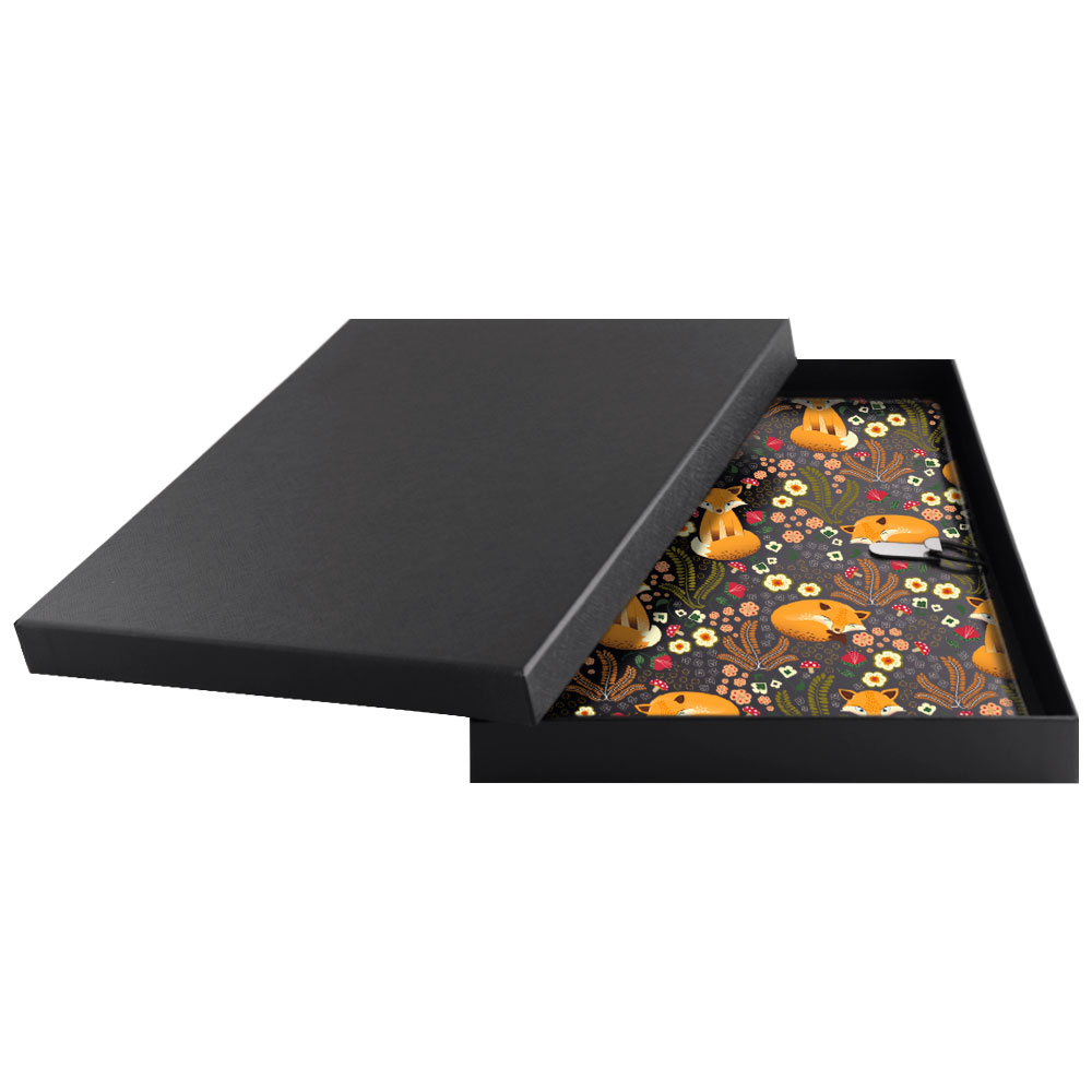 GEP DESIGN konferenčné dosky v darčekovej krabičke čiernej - Líška so štvorčekovým blokom blokom - recyklovaná koženka