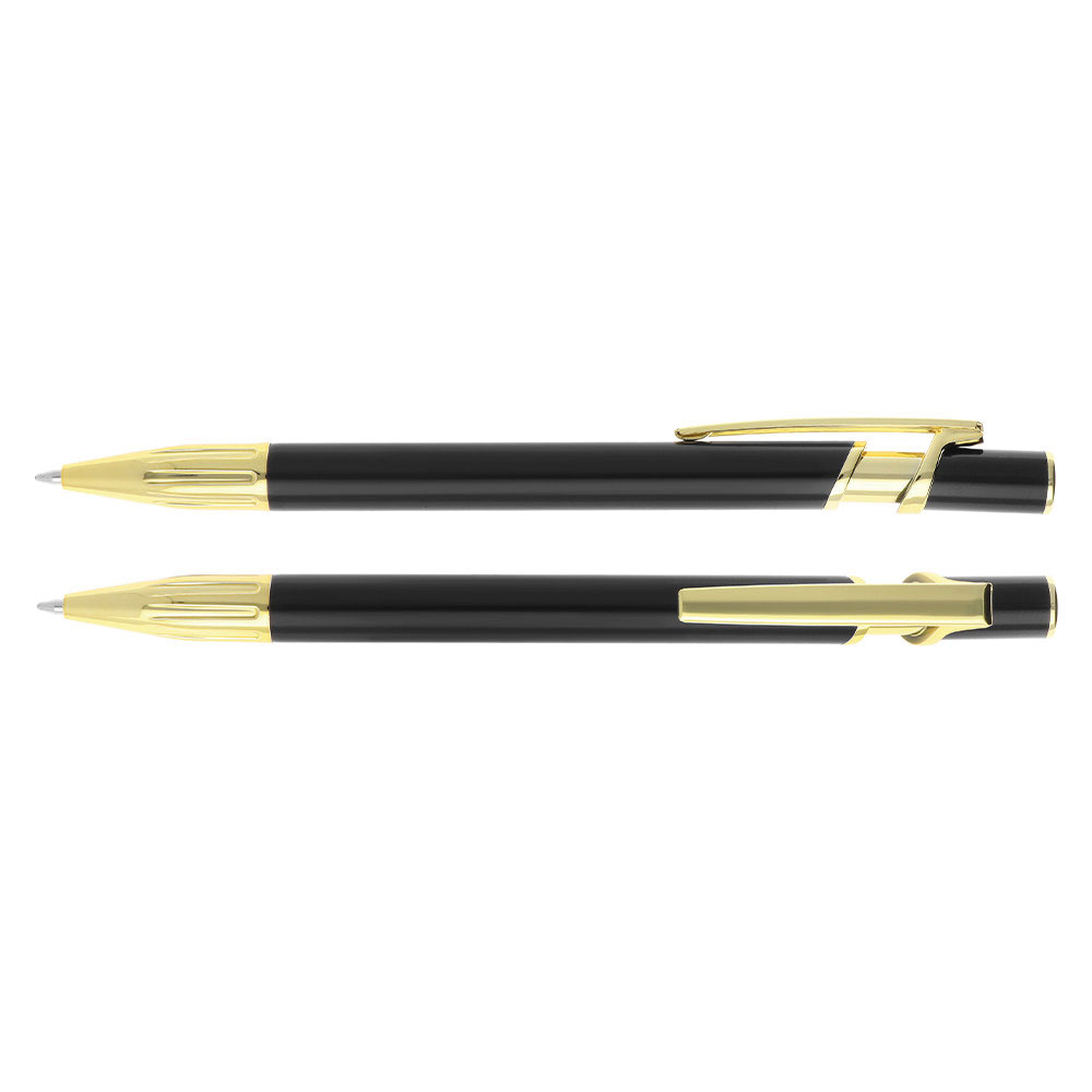 Hliníkové guľôčkové pero Philomena s ergonomicky tvarovaným telom a stiskacím mechanizmom -čierna/zlatá