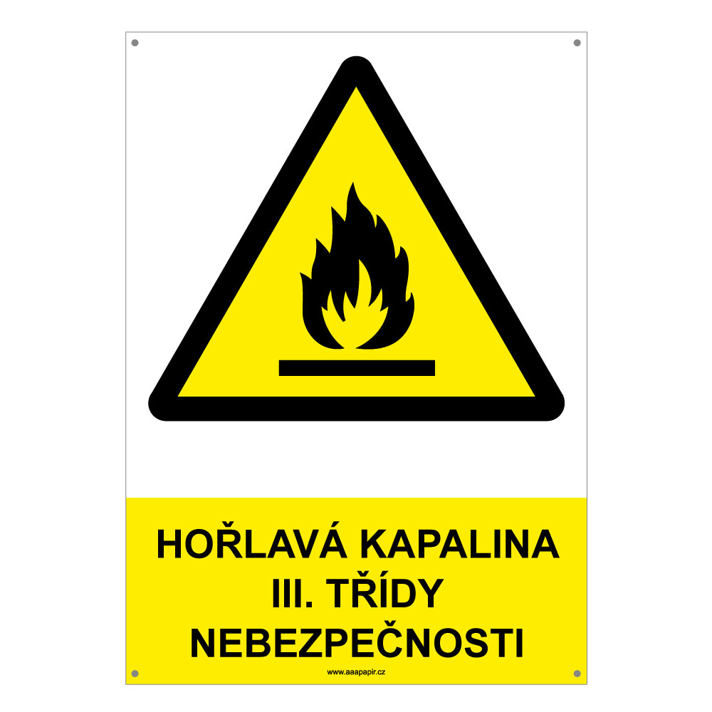 HOŘLAVÁ KAPALINA III. TŘÍDY NEBEZPEČNOSTI - bezpečnostní tabulka s dírkami, plast A4, 2 mm