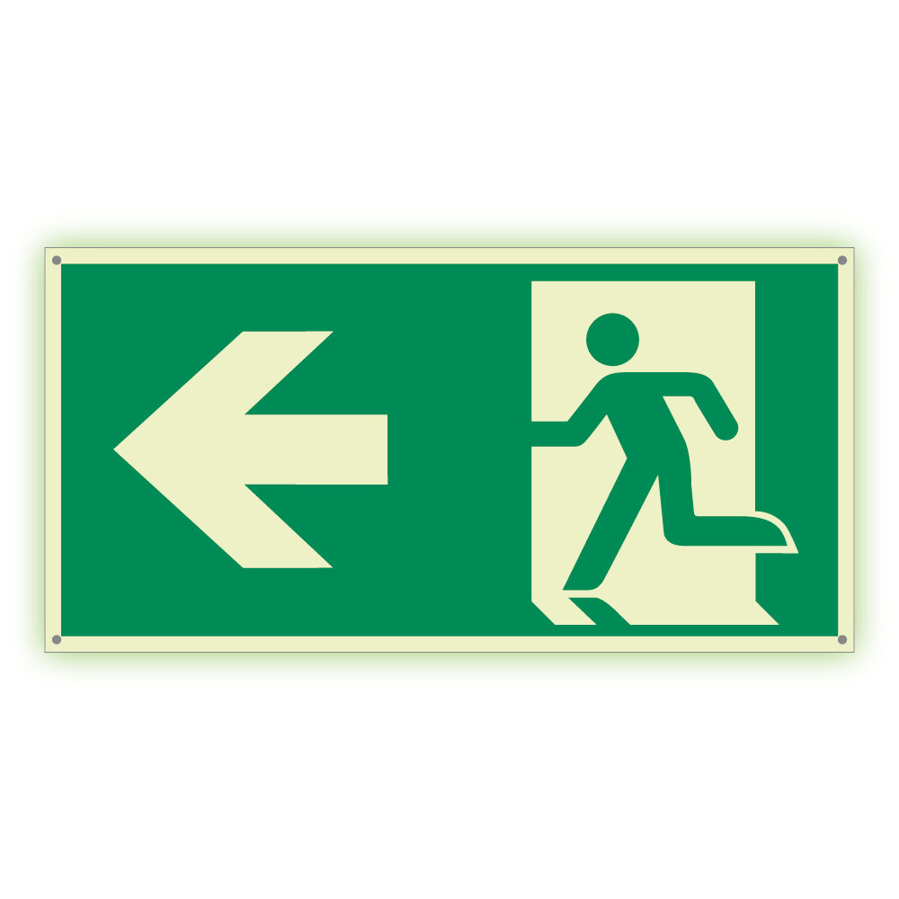 Kierunek do wyjścia drogi ewakuacyjnej w lewo - fotoluminescencyjny znak, płyta PVC 1 mm 300x150 mm