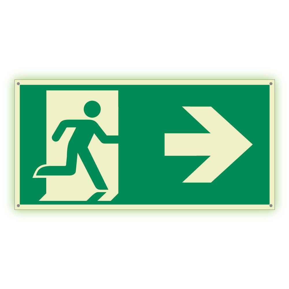 Kierunek do wyjścia drogi ewakuacyjnej w prawo - fotoluminescencyjny znak, płyta PVC 2 mm 300x150 mm