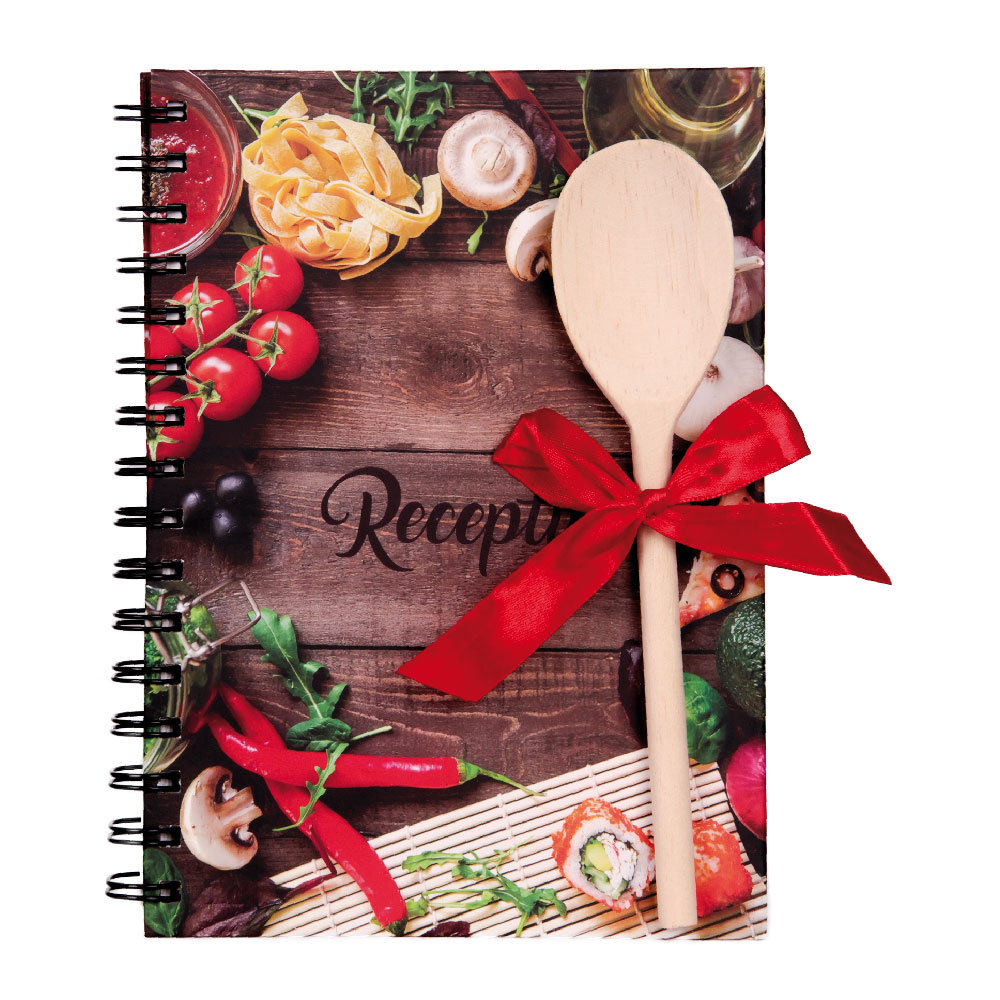 Väzba: krúžková väzba, pevné dosky, mašľou priprevnená vareška