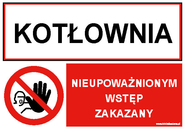 KOTŁOWNIA - NIEUPOWAŻNIONYM WSTĘP ZAKAZNY, ZNAK ŁĄCZONY, naklejka 210x148 mm