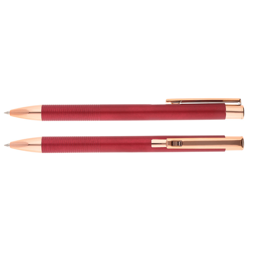 Kovové guličkové pero s modrou náplňou v lesklých farebných odtieňoch.