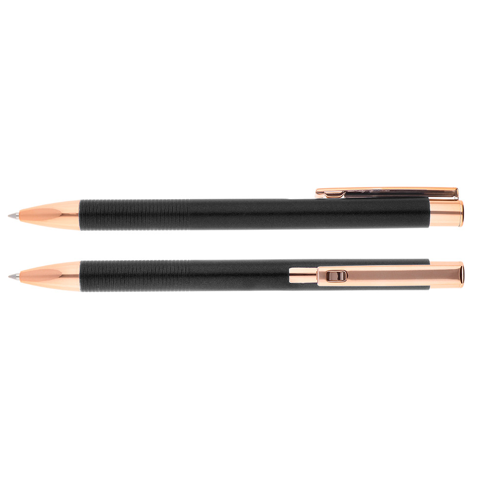 Kovové guličkové pero s modrou náplňou v lesklých farebných odtieňoch.